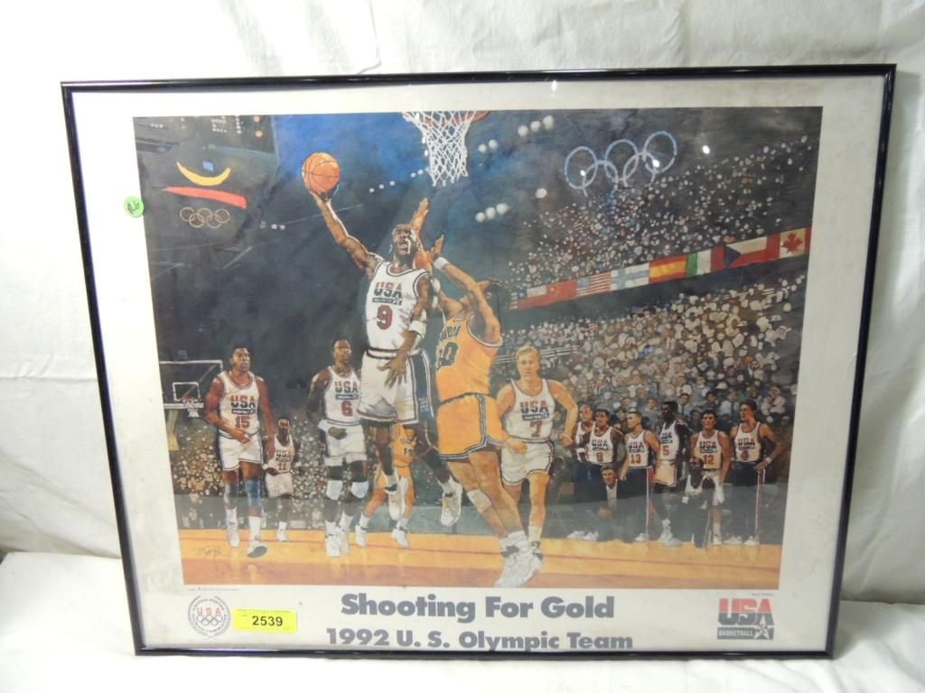 SHOOTING FOR GOLD 1992 US OLYMPIC TEAM. BASKETBALL TEAM WATERCOLOR PRINT. AS SHOWN. SEE PHOTO FOR MORE DETAILS.