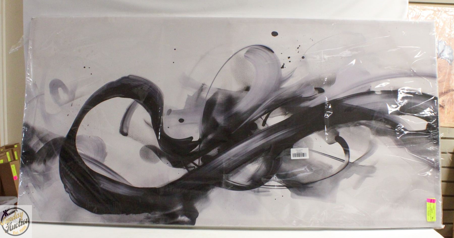 NEW FRAMED BLACK AND WHITE ABTRACT WALL ART 24X48"
