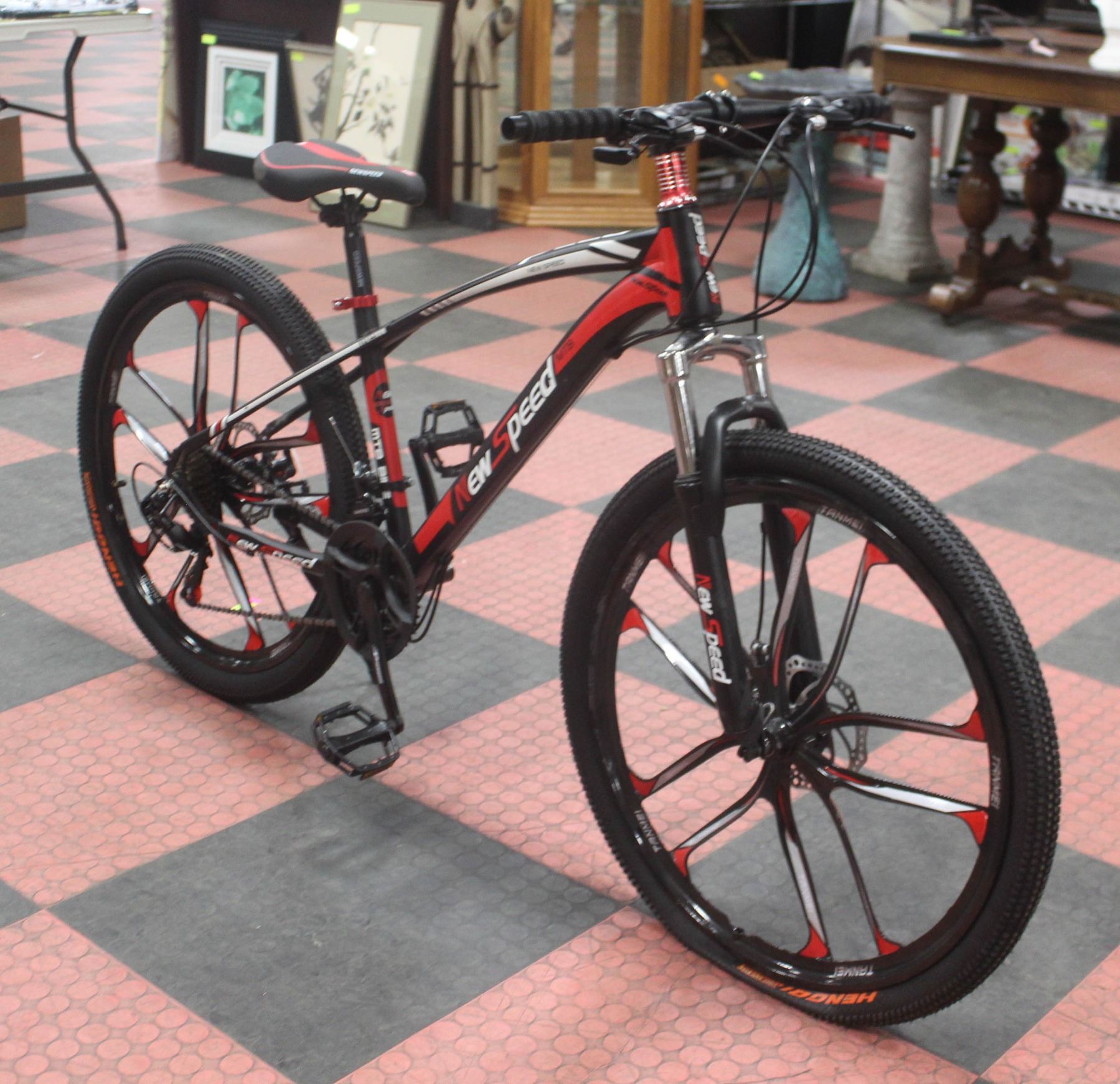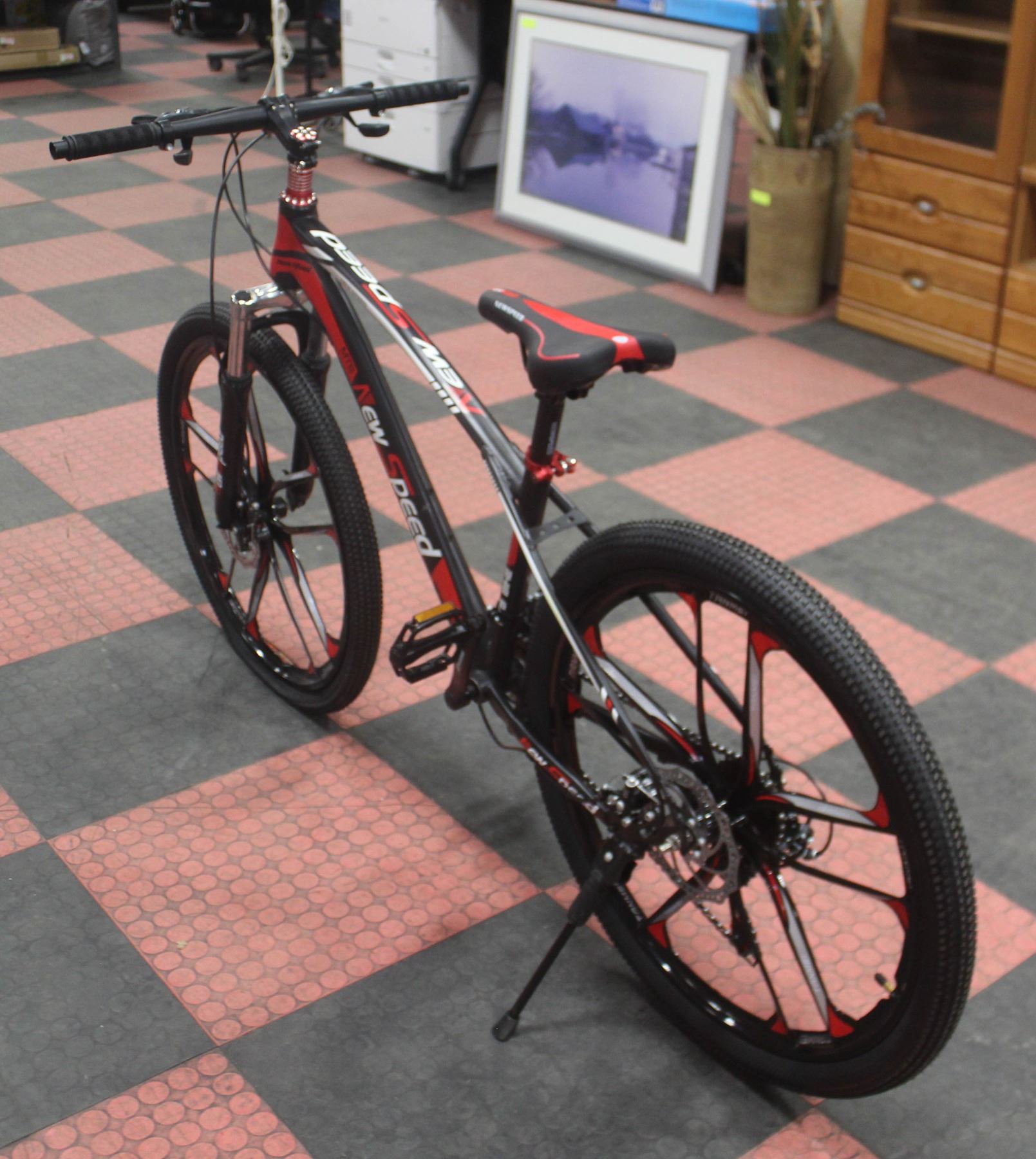 DISC BRAKES, 26" RIMS, ASSEMBLY REQUIRED. SOLD AS IS WHERE IS. NEEDS A NEW FRONT TUBE **ALL ITEMS MUST BE REMOVED BY 5PM SATURDAY, JUNE 24TH 2023. ALL REMAINING ITEMS WILL BE SUBJECT TO A $6.00 PER DAY STORAGE CHARGE. ANY ITEMS REMAINING AFTER MONDAY, JULY 10TH, 2023 WILL BE CONSIDERED FORFEITED. NO REFUNDS WILL BE ISSUED FOR FORFEITED ITEMS. TO SCHEDULE A PICK UP APPOINTMENT CLICK HERE