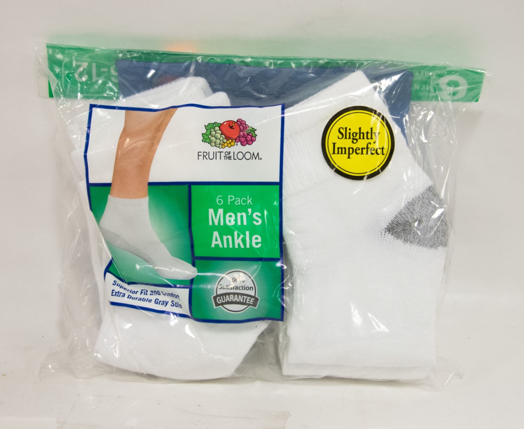 NEW FRUIT OF THE LOOM WHITE MENS ANKLE SOCKS SZ 6-