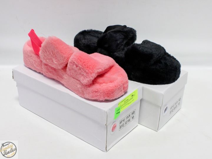 NEW FUZZY WOMEN'S SLIPPERS 1PINK 1BLACK SIZE 10