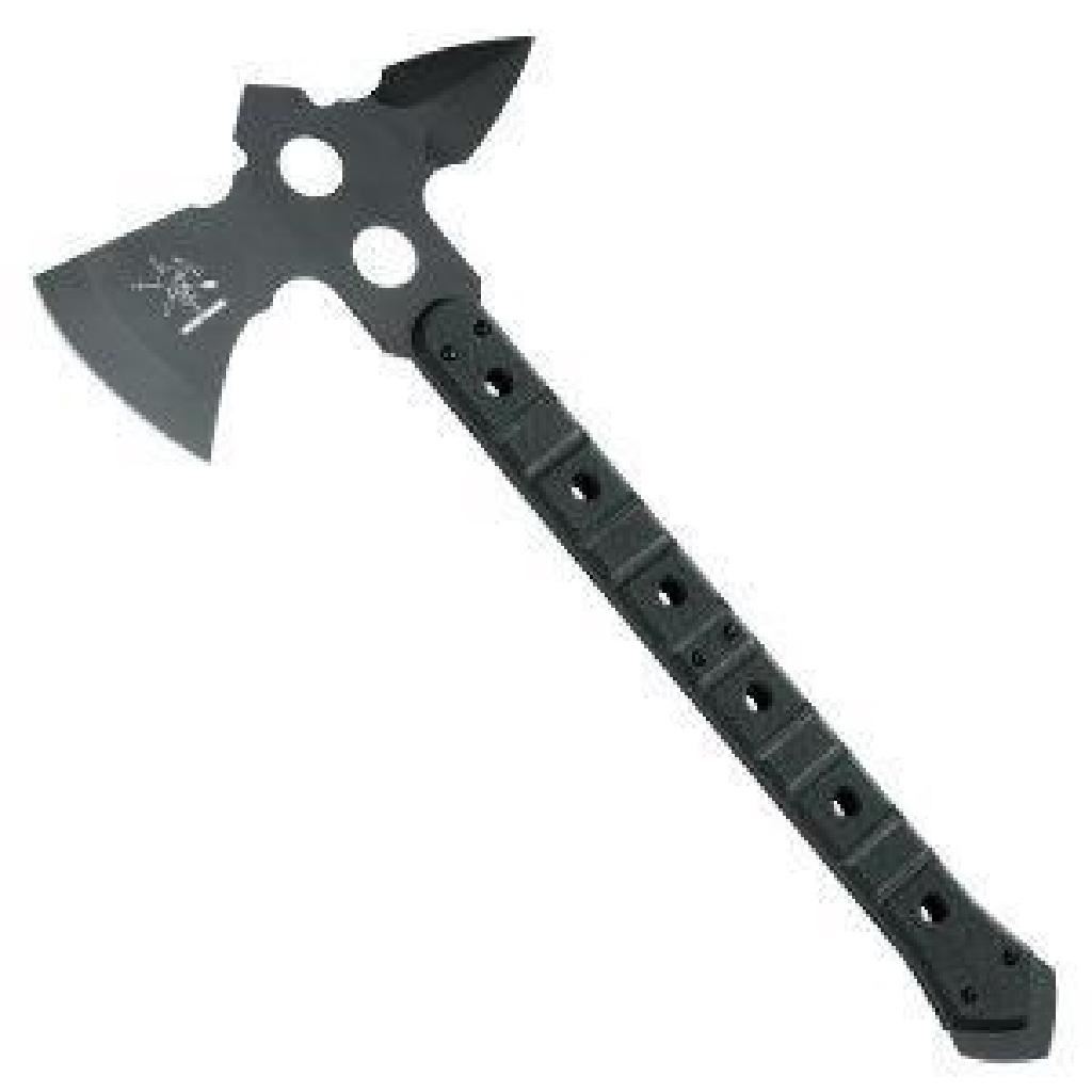 Short Description Fighting Tomahawk, Large, Black/OD Green G10 Handle w/Sheath Long Description ATC was asked to design a fighting axe that could be both used in extreme situations and that could be accurately thrown. The ATC Comanche has been completely manufactured by our company, following US Special Forces specifications. The axe is very well balanced, with G10 handles greatly increasing the grip performance. Included is a carry sheath that has been specially developed and designed for carrying ease. These are very special tools that will greatly aid the end user in the field. Features Overall Length: 18.22 inch Blade Style: Tomahawk Blade Material: Stainless Steel N690Co Handle Material: G10 Composite Weight: 35.27 oz. Includes: Carry Sheath