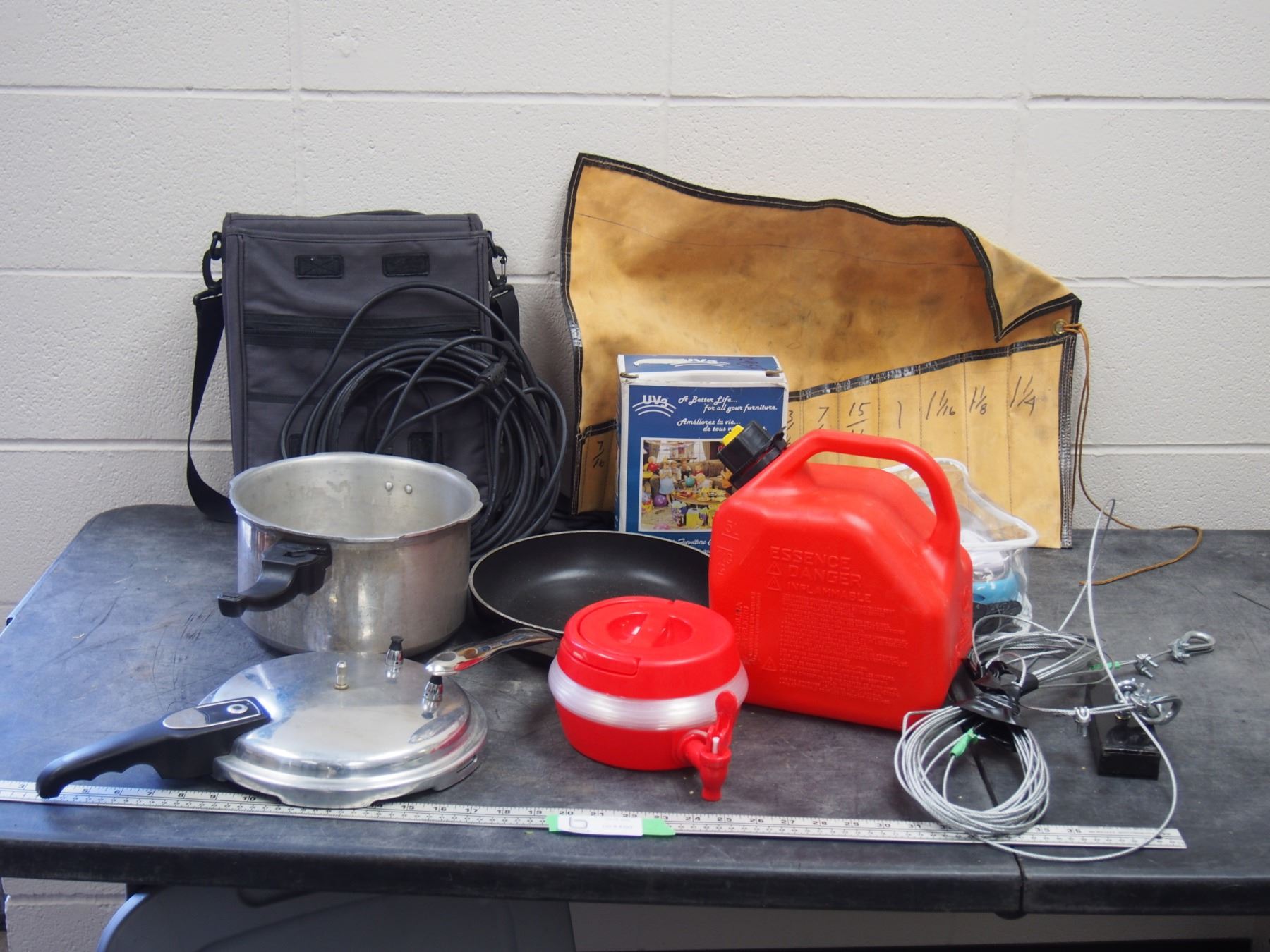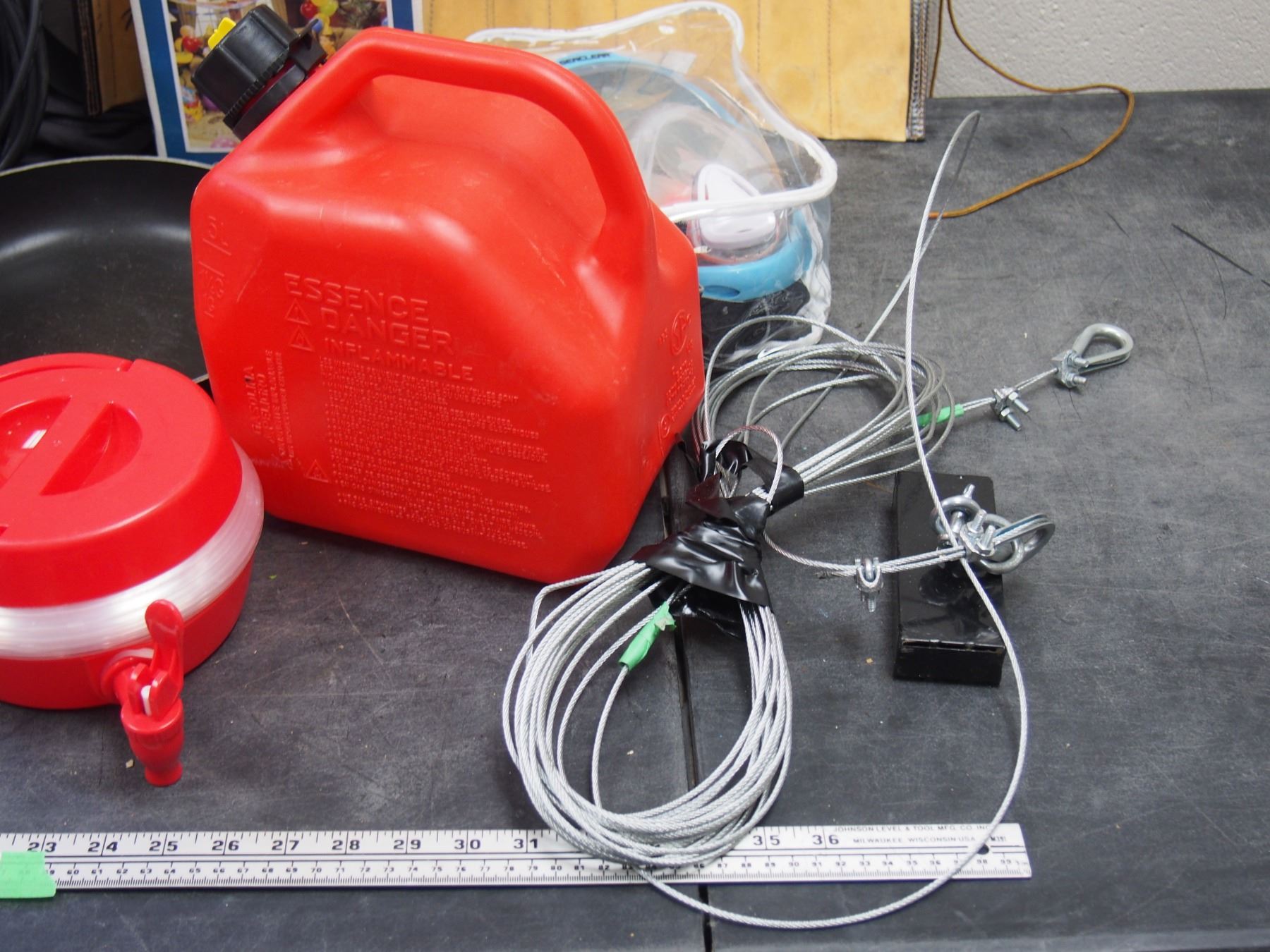 NEW GAS CAN, PRESSURE COOKER, WRENCH ORGANIZER, SCUBA GEAR, WIRE