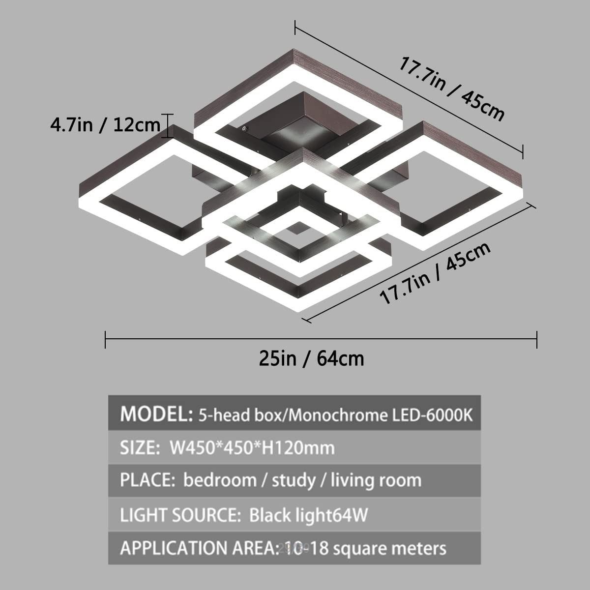NEW GEADI LED 5 SQUARE CEILING LIGHT, DIMMABLE