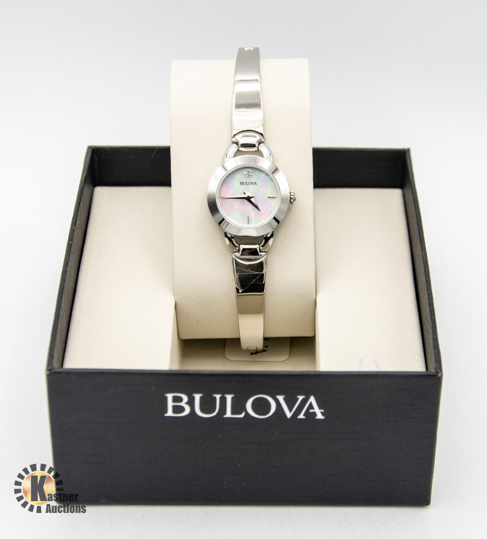 CASE AND BRACELET AND MOTHER OF PEARL DIAL COMES WITH ORIGINAL BOX AND NEW BATTERY MSRP $259.00 **ALL ITEMS MUST BE REMOVED BY 5PM SATURDAY, DECEMBER 30TH 2023. ALL REMAINING ITEMS WILL BE SUBJECT TO A $6.00 PER DAY STORAGE CHARGE. ANY ITEMS REMAINING AFTER MONDAY, JANUARY 8TH, 2023 WILL BE CONSIDERED FORFEITED. NO REFUNDS WILL BE ISSUED FOR FORFEITED ITEMS. TO SCHEDULE A PICK UP APPOINTMENT CLICK HERE