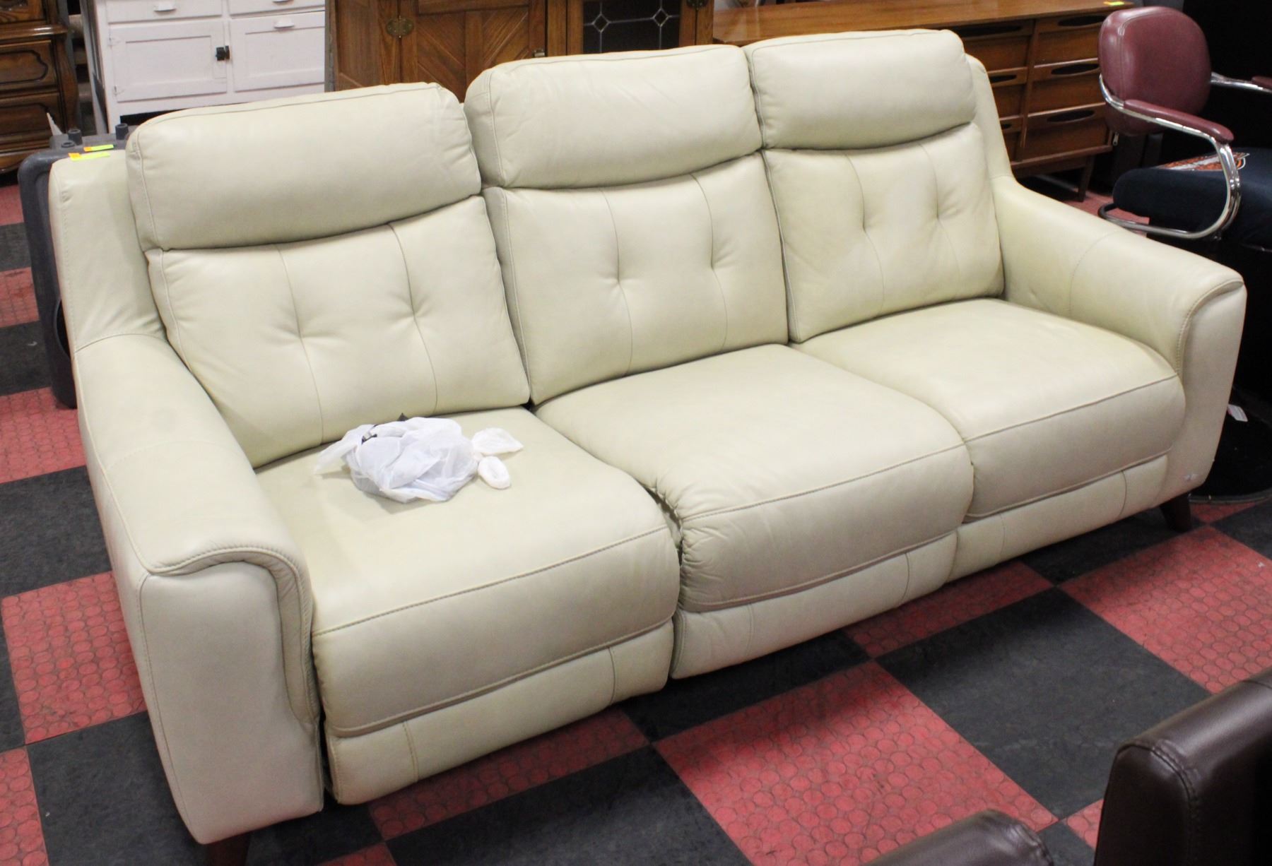 SOFA. *SOFA HAS INCH LONG TEAR TO FRONT LEFT SIDE, COULD BE PATCHED WITH MATCHING STRIP OF LEATHER. DIMENSIONS: 84" X 39"