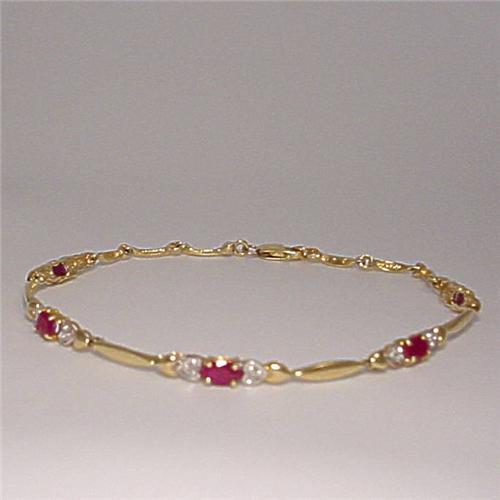 [137267586] GORGEOUS BRACELET BOASTS BOTH GENUINE RUBIES AND DIAMONDS! SET IN SOLID 10K YELLOW GOLD. EXQUISITE! 7 INCHES LONG.