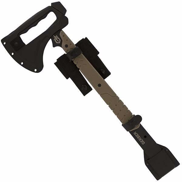 The axe head's beveled edge is capable of chopping through drywall and turning walls and doors to splinters. The backside of the ax head functions as hammer for getting through hinges, locks, doorknobs and anything else that's there to slow you down. The third threat is a pry bar at the end of the handle, c ontrolled by a cutaway grip in the ax head. Opposite the business end of the Downrange Tomahawk is a hefty pry bar. The 420HC steel body with Cerakote will not bend or break, and the desert tan G-10 handle has integrated scales to keep the tool firmly in your hands no matter the conditions. Tomahawks don't exactly fit in your pocket, so it comes with a sheath that's as practical as the tool itself. No matter what line of duty you serve in, if this tool is going to make it to where the action is, it has to be easy to carry. Which is where the MOLLE-compatible sheath comes into play. It readily attaches to your pack, standard webbing or body armor, so it goes where you do Country of Origin: United States