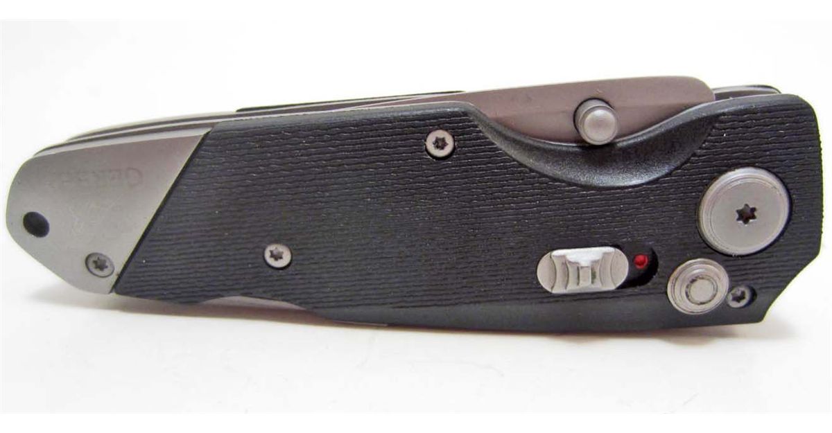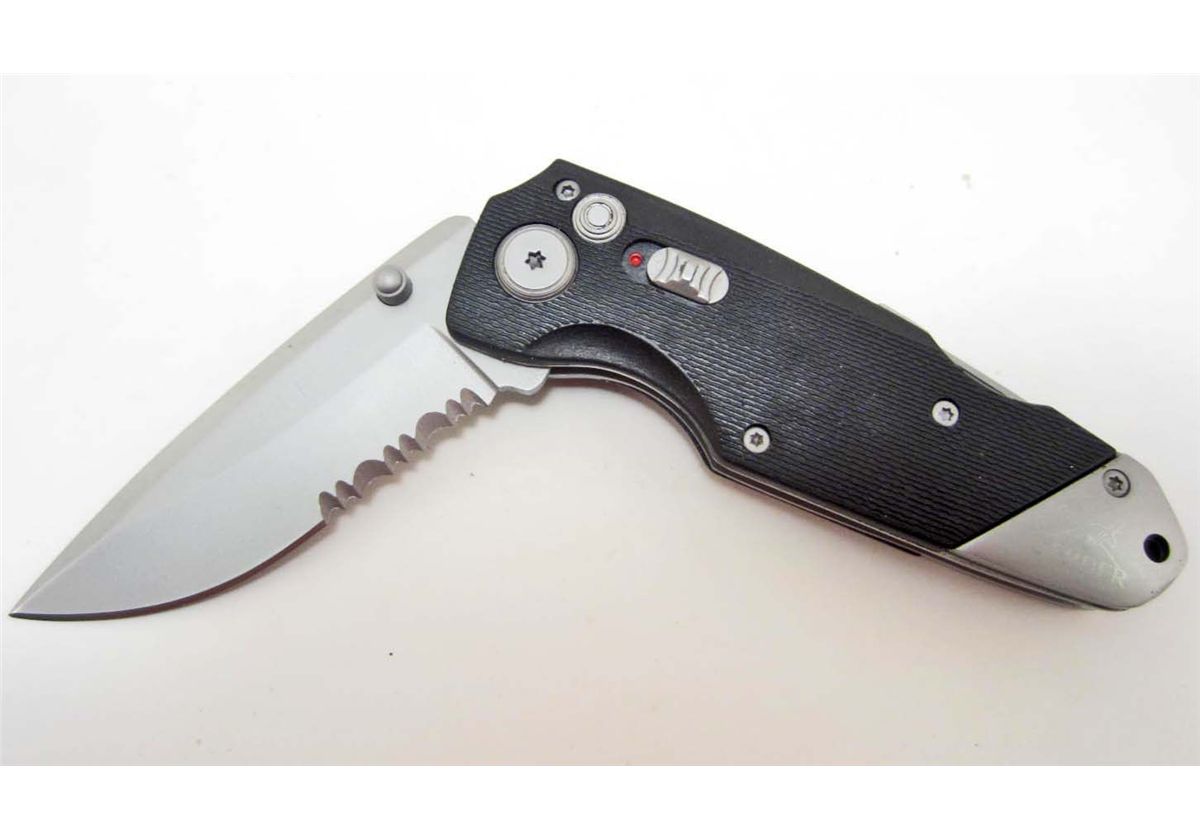 4.15"closed plunge lock. 3" partially serrated 440 stainless drop point blade w/ matte finish and dual thumb studs. Stainless handles w/ bead blast finish and black glass filled nylon inlays. Features integrated cross driver w/ file and medium flathead driver w/ bottle opener. Lanyard hole. Stainless pocket clip.