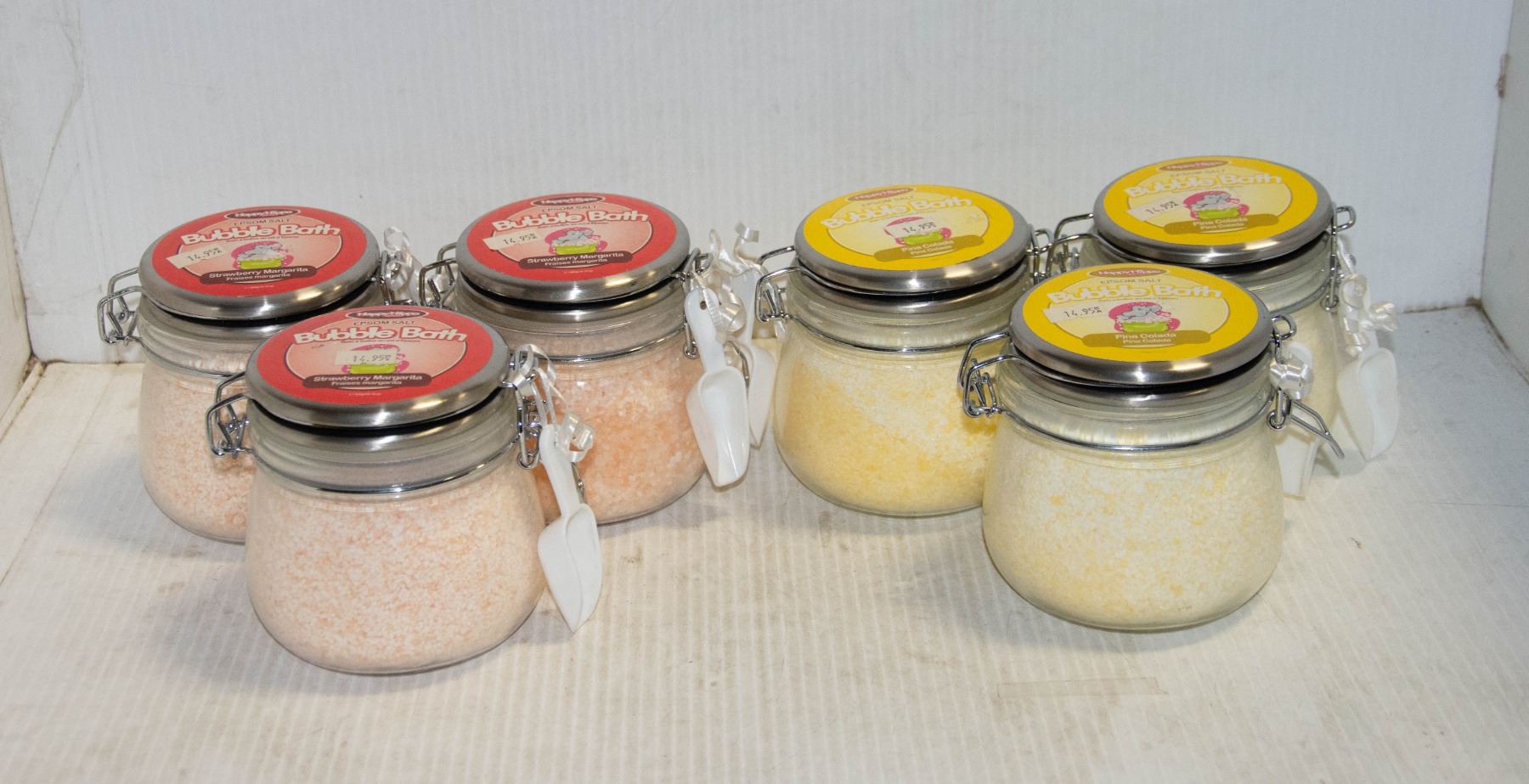 1 FLAT OF 6 GIFT JARS OF HAPPY HIPPO EPSON SALT BUBBLE BATH 3 STRAWBERRY MARGARITA 3 PINA COLADA **SHIPPING NOT AVAILABLE****ALL ITEMS MUST BE REMOVED BY 5PM MONDAY, SEPTEMBER 17, 2022. ALL REMAINING ITEMS WILL BE SUBJECT TO A $6.00 PER DAY STORAGE CHARGE. ANY ITEMS REMAINING AFTER MONDAY, SEPTEMBER 17, 2022 WILL BE CONSIDERED FORFEITED. NO REFUNDS WILL BE ISSUED FOR FORFEITED ITEMS. TO SCHEDULE A PICK UP APPOINTMENT CLICK HERE