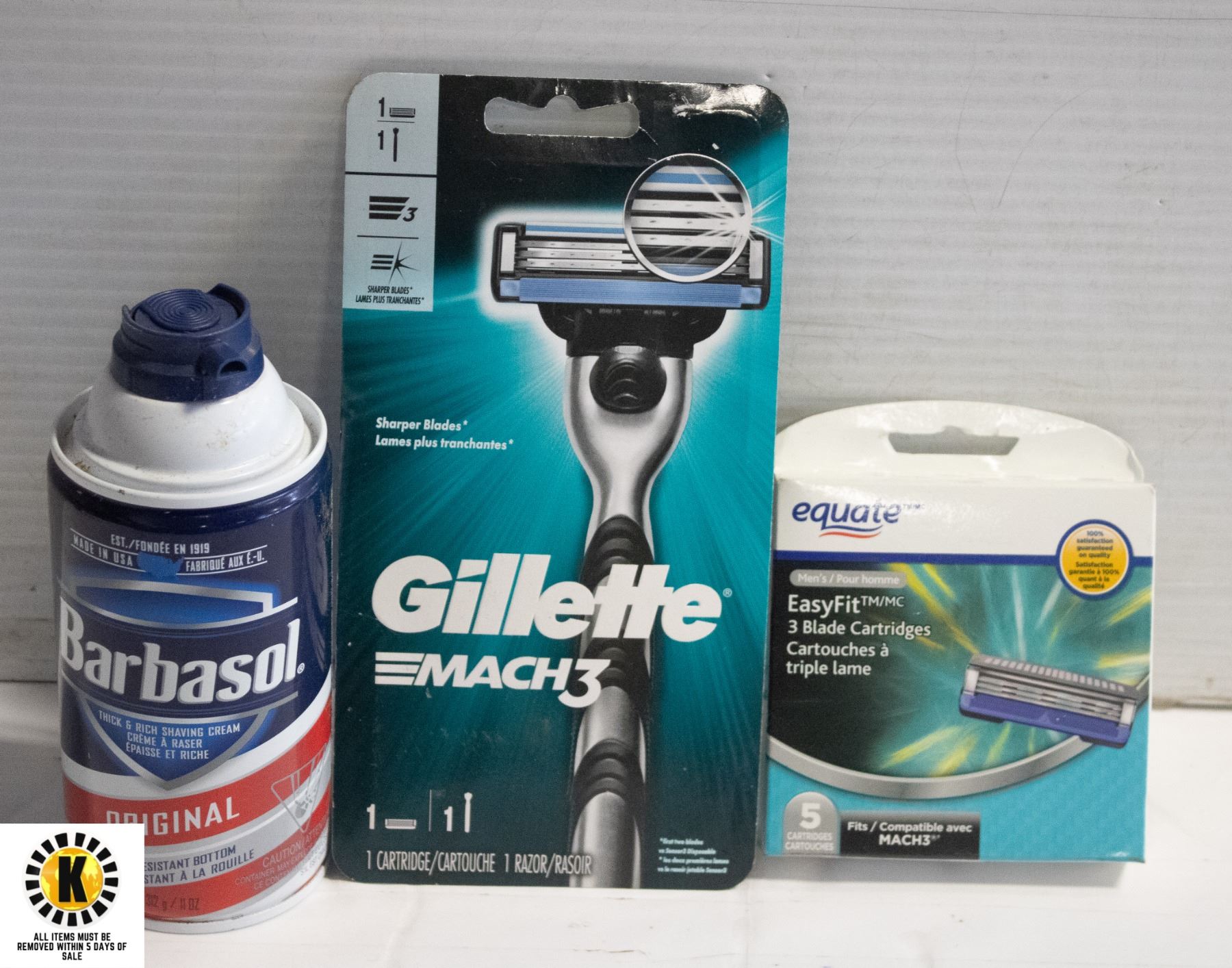 1 GILLETTE + 5 EQUATE CARTRIDGS , BARBASOL SHAVING CREAM