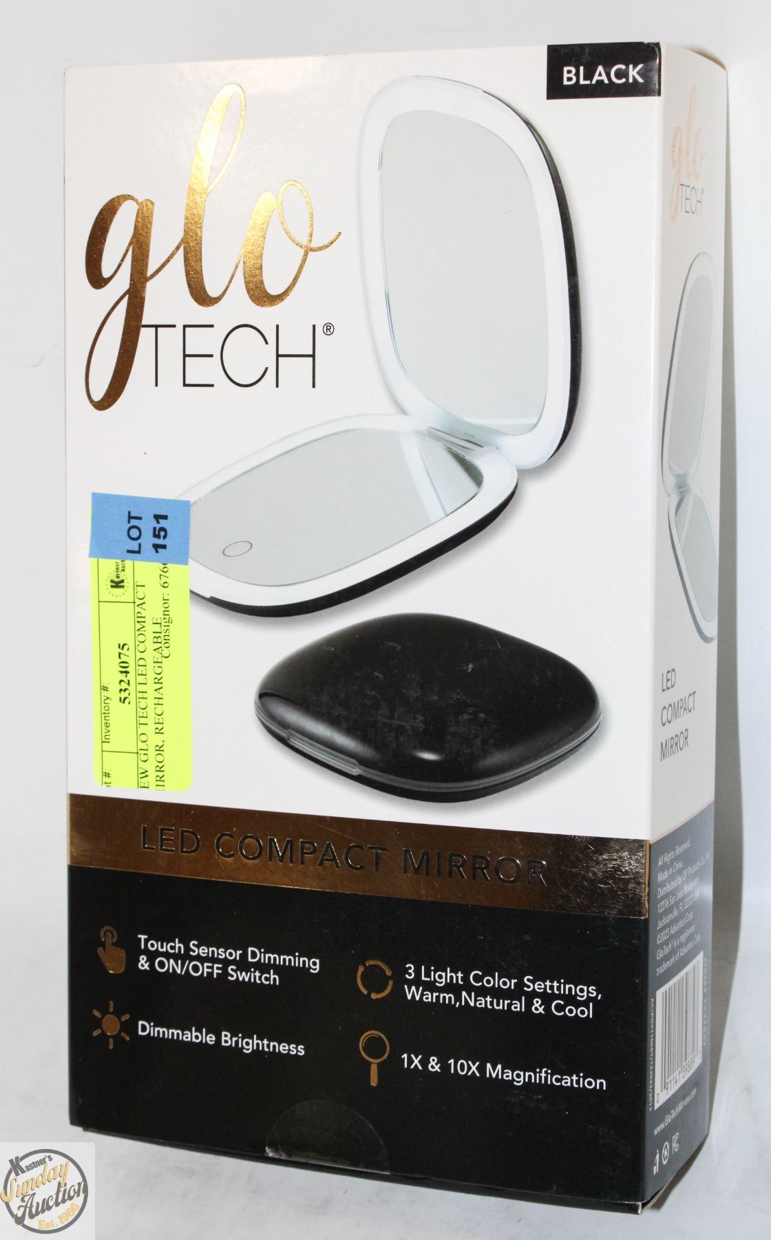 NEW GLO TECH LED COMPACT MIRROR, RECHARGEABLE