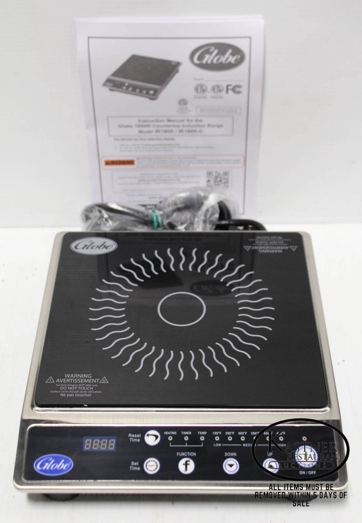 MODEL: IR1800-C. 1800W, 120V. 5-20P PLUG. AUTOMATIC PAN DETECTION, 6 TEMPERATURE SETTINGS, OVERHEAT PROTECTION, TOUCH PAD CONTROLS, DIGITAL TIMER.