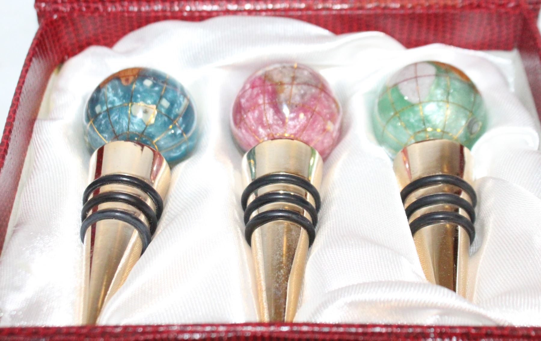 NEW GLOBES BOTTLE STOPPER GIFT SET/