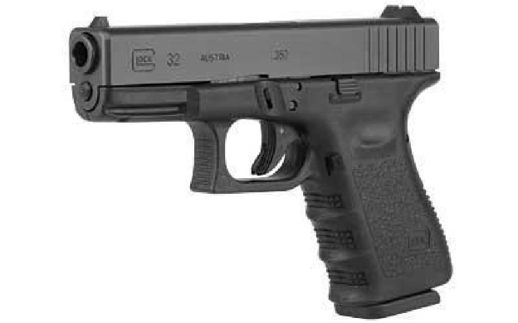Product Specifications UPC Code: 764503325021 Manufacturer: Glock Model: 32 Action: Semi-automatic Type: Double Action Only Size: Compact Caliber: 357 Sig Barrel Length: 4.02" Frame/Material: Polymer Finish/Color: Matte Capacity: 10Rd Accessories: 2 Mags, Glock OEM Rail Fired Casing: Fired Case Hand: Right Hand Sights: Fixed Sights Manufacturer Part #: 3250201