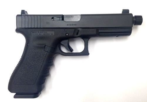 FAMILY:G17 Series MODEL:G17 TYPE:Semi-Auto Pistol ACTION:Safe Action FINISH:Gas Nitride STOCK/FRAME:Polymer Frame STOCK/GRIPS:Black Polymer Frame SPC FEATURE:Threaded Barrel Model CALIBER/GAUGE:9mm CAPACITY:17+1 # OF MAGS:2 MAGAZINE DESC:17 rd. BARREL:4.48" OVERALL LENGTH:8.03" SIGHTS:AmeriGlo Suppressor Fixed Sgts SAFETY:3 Safeties ADDL INFO:polymer thread protector ADDL INFO:Includes Case