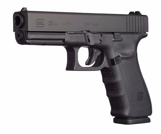 FAMILY:G20 Series MODEL:G20 G4 TYPE:Semi-Auto Pistol ACTION:Safe Action FINISH:Gas Nitride STOCK/FRAME:Polymer Frame STOCK/GRIPS:Black Polymer CALIBER/GAUGE:10mm CAPACITY:15+1 # OF MAGS:3 MAGAZINE DESC:15 rd. BARREL:4.61" OVERALL LENGTH:8.23" SIGHTS:Fixed SAFETY:3 Safeties GUN CASE:Plastic