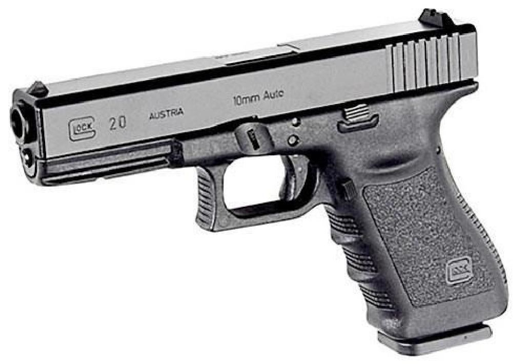 FAMILY:G20 Series MODEL:G20SF TYPE:Semi-Auto Pistol ACTION:Safe Action FINISH:Gas Nitride STOCK/FRAME:Polymer Frame STOCK/GRIPS:Black Polymer CALIBER/GAUGE:10mm CAPACITY:15+1 # OF MAGS:2 MAGAZINE DESC:15 Round BARREL:4.6" SIGHTS:Fixed ADDL INFO:Picatinny Rail