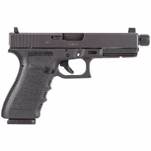 FAMILY:G21 Series MODEL:G21 TYPE:Semi-Auto Pistol ACTION:Safe Action FINISH:Gas Nitride STOCK/FRAME:Polymer Frame STOCK/GRIPS:Black Polymer SPC FEATURE:Threaded Barrel Model CALIBER/GAUGE:45 ACP CAPACITY:13+1 # OF MAGS:2 MAGAZINE DESC:13 rd. BARREL:4.6" OVERALL LENGTH:8.03" SIGHTS:AmeriGlo Suppressor Fixed Sgts ADDL INFO:Threaded Barrel GUN CASE:Plastic
