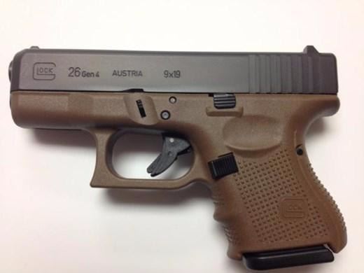 FAMILY:G26 Series MODEL:G26 G4 TYPE:Semi-Auto Pistol ACTION:Safe Action FINISH:Gas Nitride STOCK/FRAME:Polymer Frame STOCK/GRIPS:Flat Dark Earth Polymer CALIBER/GAUGE:9mm CAPACITY:10+1 # OF MAGS:3 MAGAZINE DESC:10 rd. BARREL:3.46" OVERALL LENGTH:6.29" SIGHTS:Fixed SAFETY:3 Safeties ADDL INFO:Interchangeable Backstrap ADDL INFO:Reversible Magazine Catch ADDL INFO:Textured Grip GUN CASE:Plastic