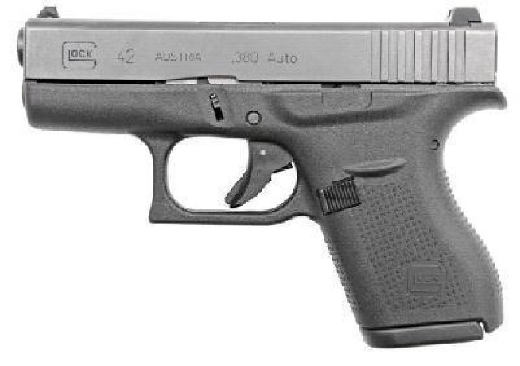 FAMILY:G42 Series MODEL:G42 TYPE:Semi-Auto Pistol ACTION:Safe Action FINISH:Gas Nitride STOCK/FRAME:Polymer Frame STOCK/GRIPS:Black Polymer CALIBER/GAUGE:380 ACP CAPACITY:6+1 # OF MAGS:2 MAGAZINE DESC:6 rd. BARREL:3.25" OVERALL LENGTH:5.94" SIGHTS:Fixed SAFETY:3 Safeties ADDL INFO:Made in the United States GUN CASE:Plastic