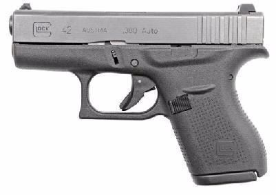 FAMILY:G42 Series MODEL:G42 TYPE:Semi-Auto Pistol ACTION:Safe Action FINISH:Gas Nitride STOCK/FRAME:Polymer Frame STOCK/GRIPS:Black Polymer CALIBER/GAUGE:380 ACP CAPACITY:6+1 # OF MAGS:2 MAGAZINE DESC:6 rd. BARREL:3.25" OVERALL LENGTH:5.94" SIGHTS:Fixed SAFETY:3 Safeties ADDL INFO:Made in the United States GUN CASE:Plastic