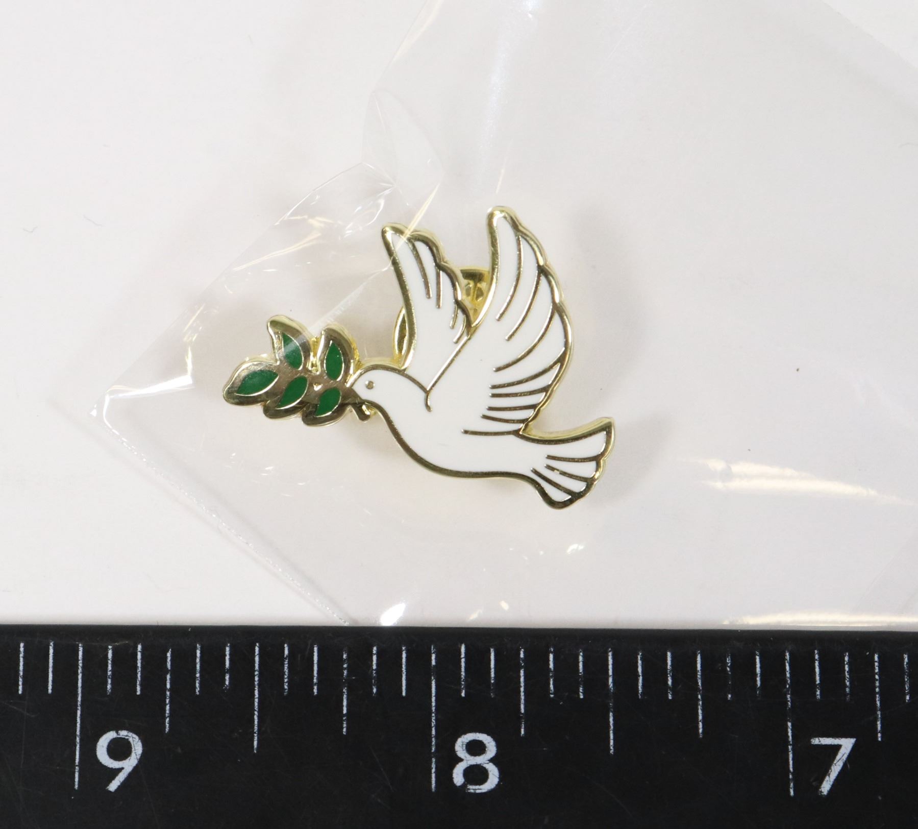 NEW GOLD TONE DOVE WITH FIG LEAF LAPEL PIN