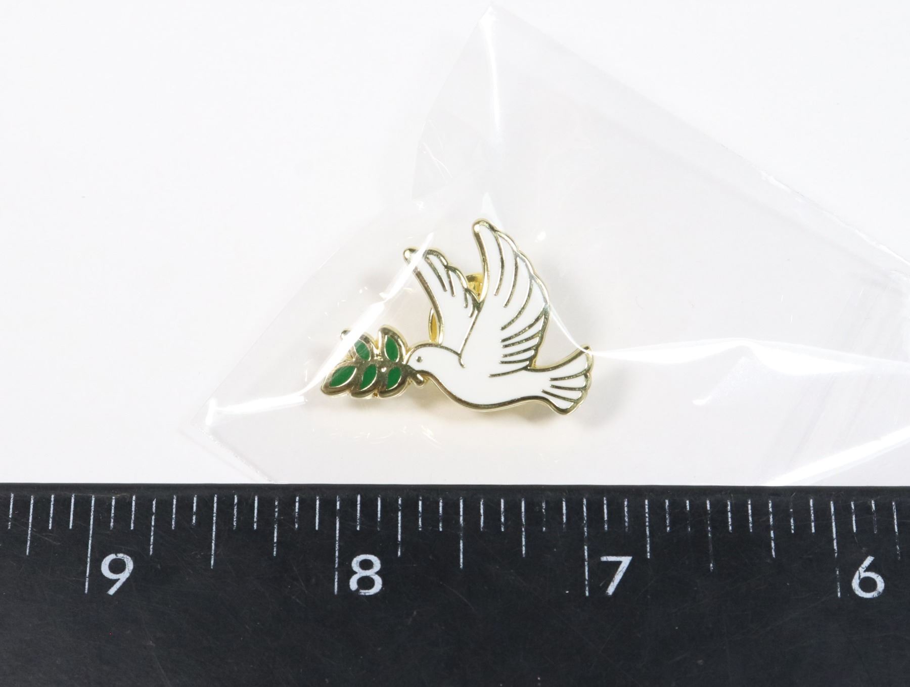 NEW GOLD TONE DOVE WITH FIG LEAF LAPEL PIN