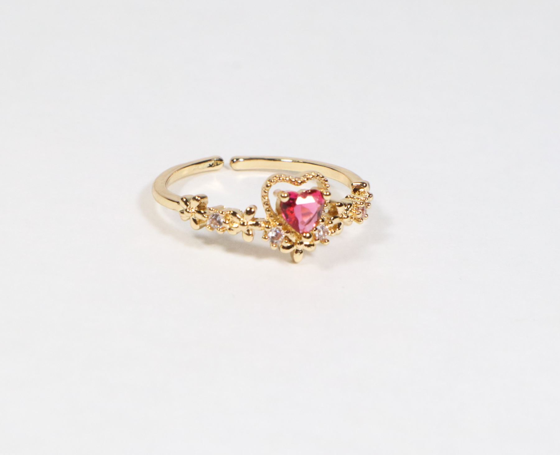 NEW GOLD TONE FLOWER & HEART RHINESTONE CUFF RING