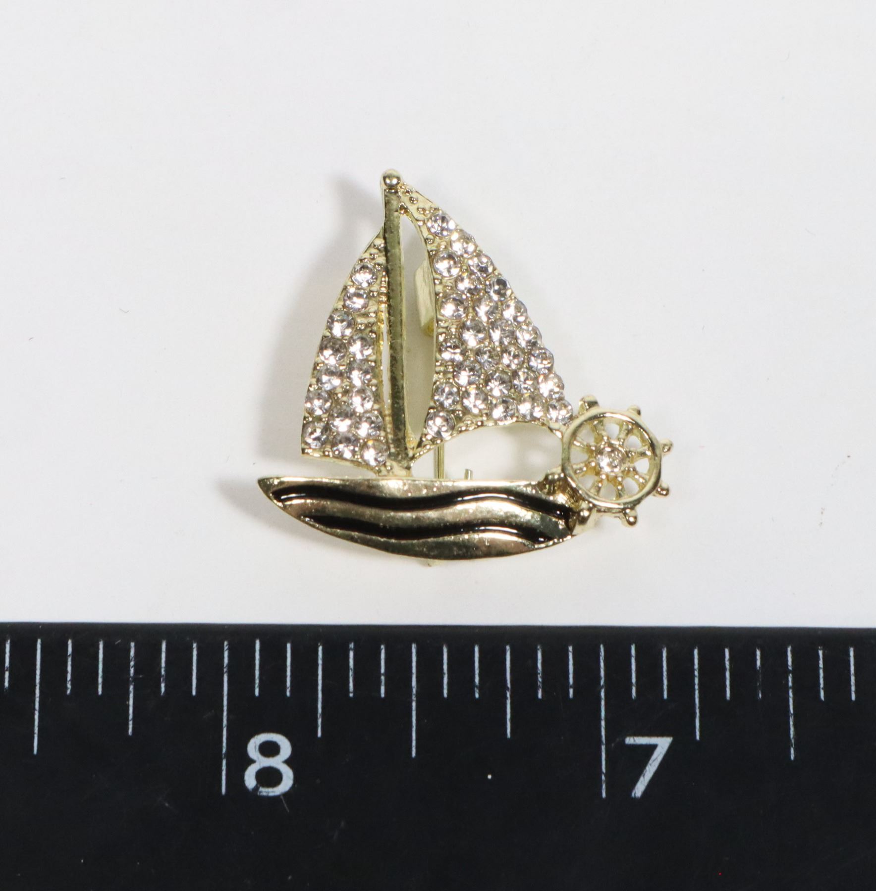 NEW GOLD TONE RHINESTONE SAILBOAT BROOCH