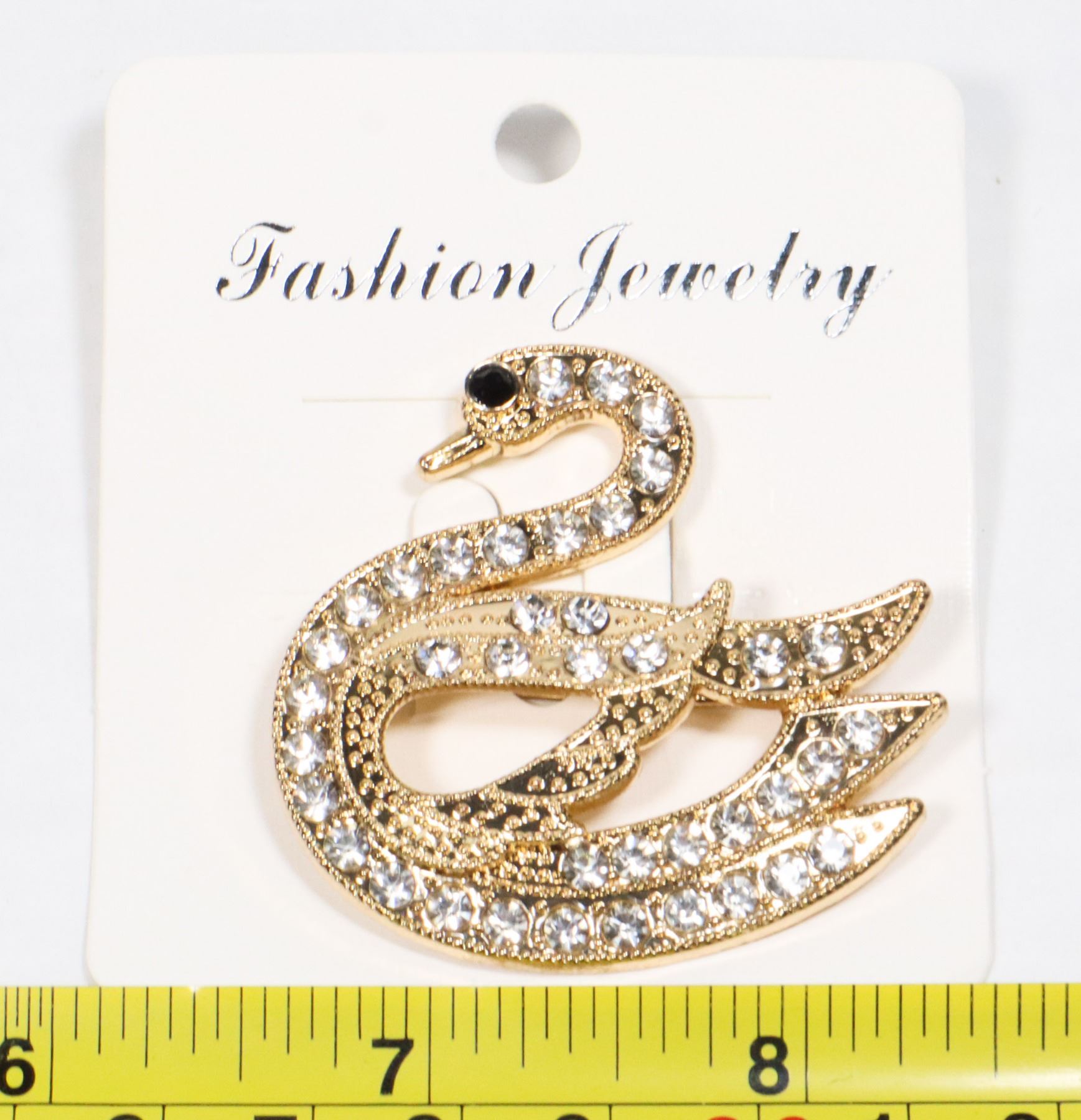 NEW GOLD TONE RHINESTONE SWAN BROOCH