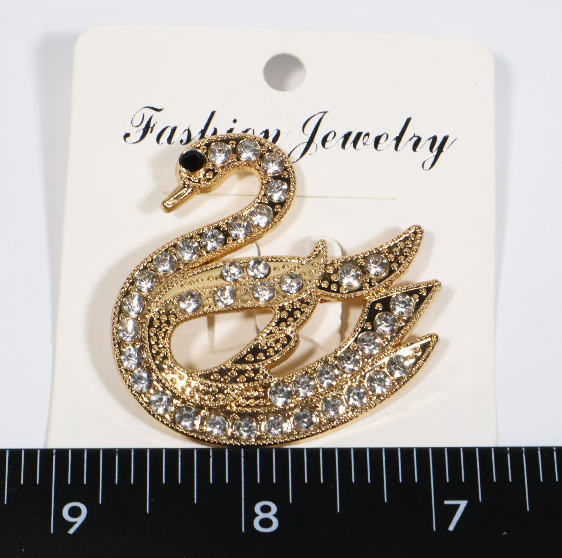 NEW GOLD TONE RHINESTONE SWAN BROOCH