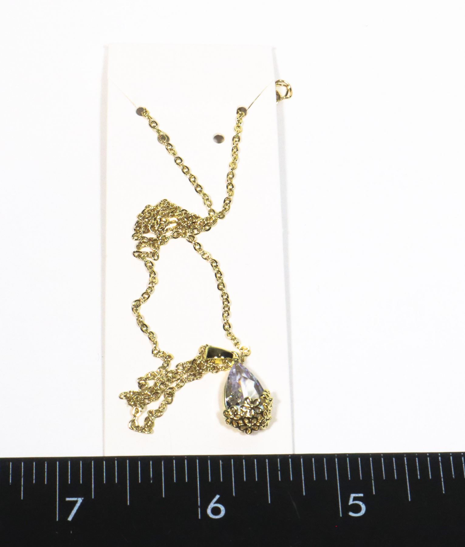 NEW GOLD TONE RHINESTONE TEAR DROP PENDANT NECKLACE