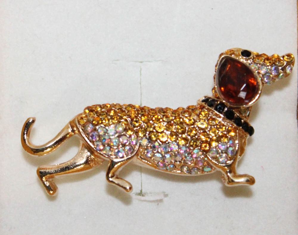 NEW GOLDEN DACHSHUND BROOCH FILLED WITH