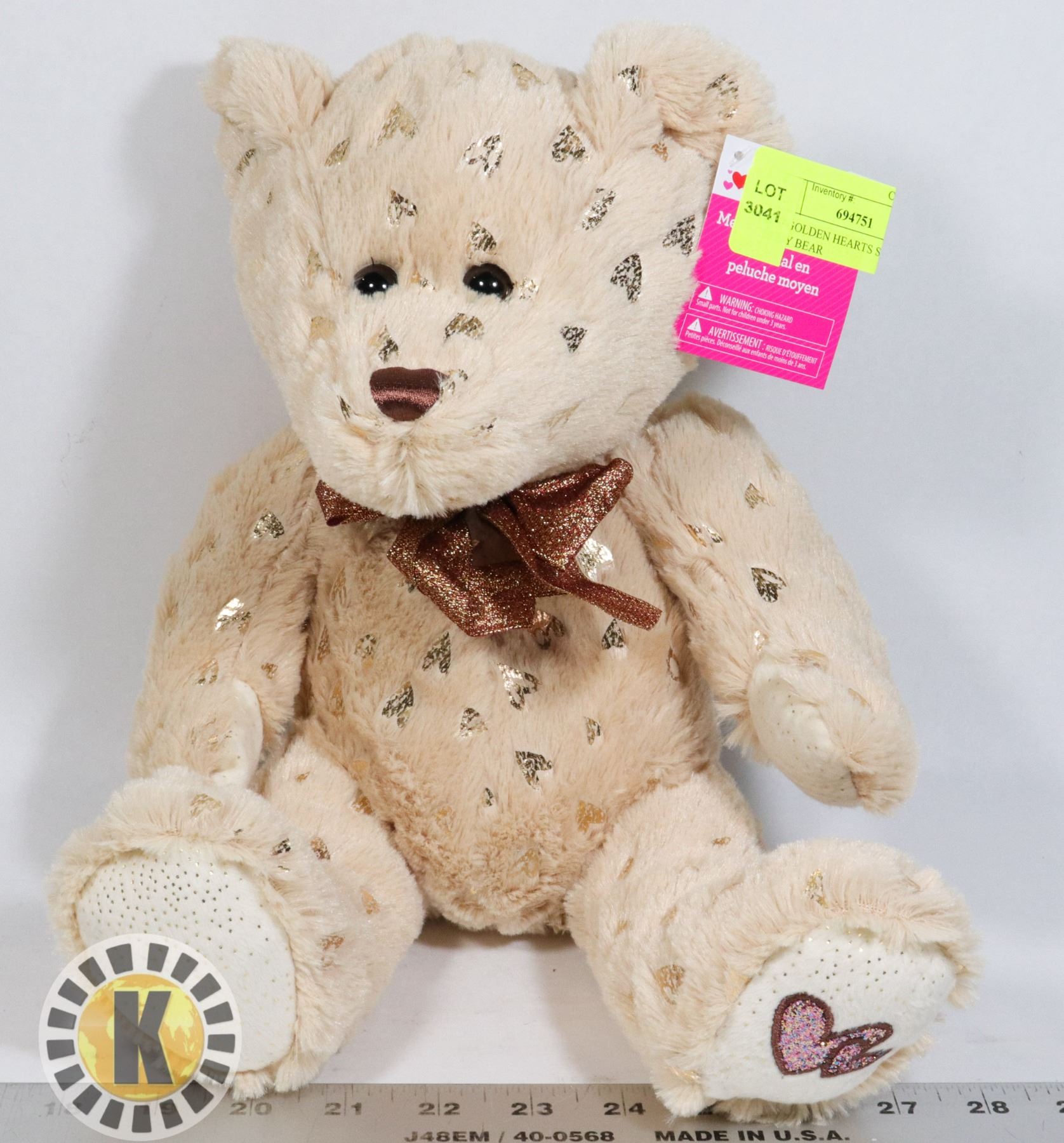NEW GOLDEN HEARTS STUFFED TEDDY BEAR