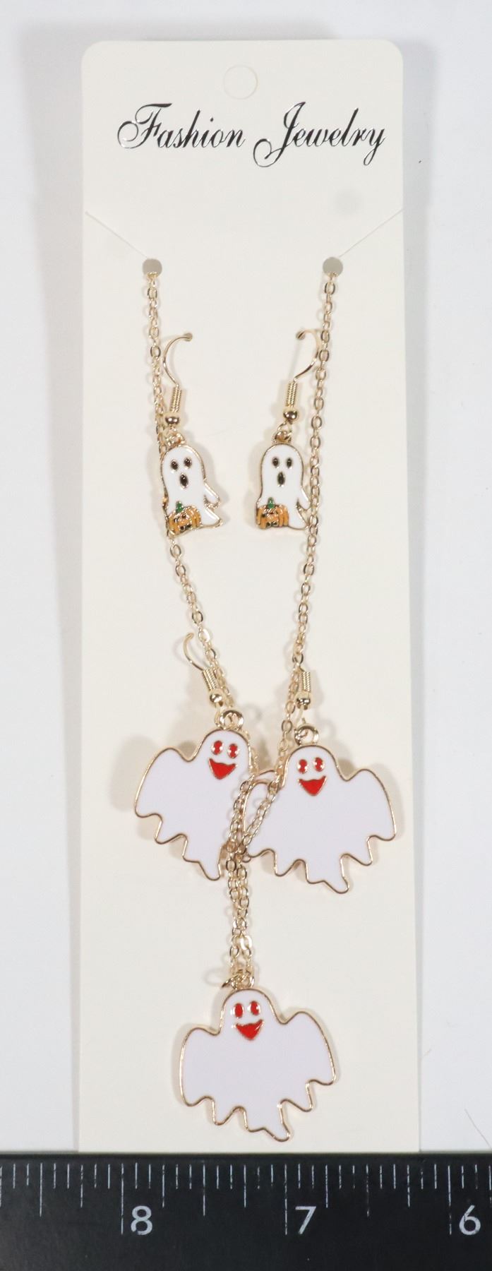 NEW GOLDTONE GHOST THEME EARRING AND NECKLACE SET
