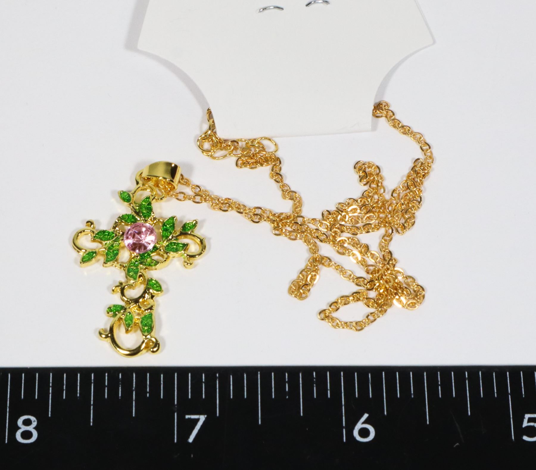 NEW GOLDTONE LEAF DESIGN CROSS WITH CHAIN.