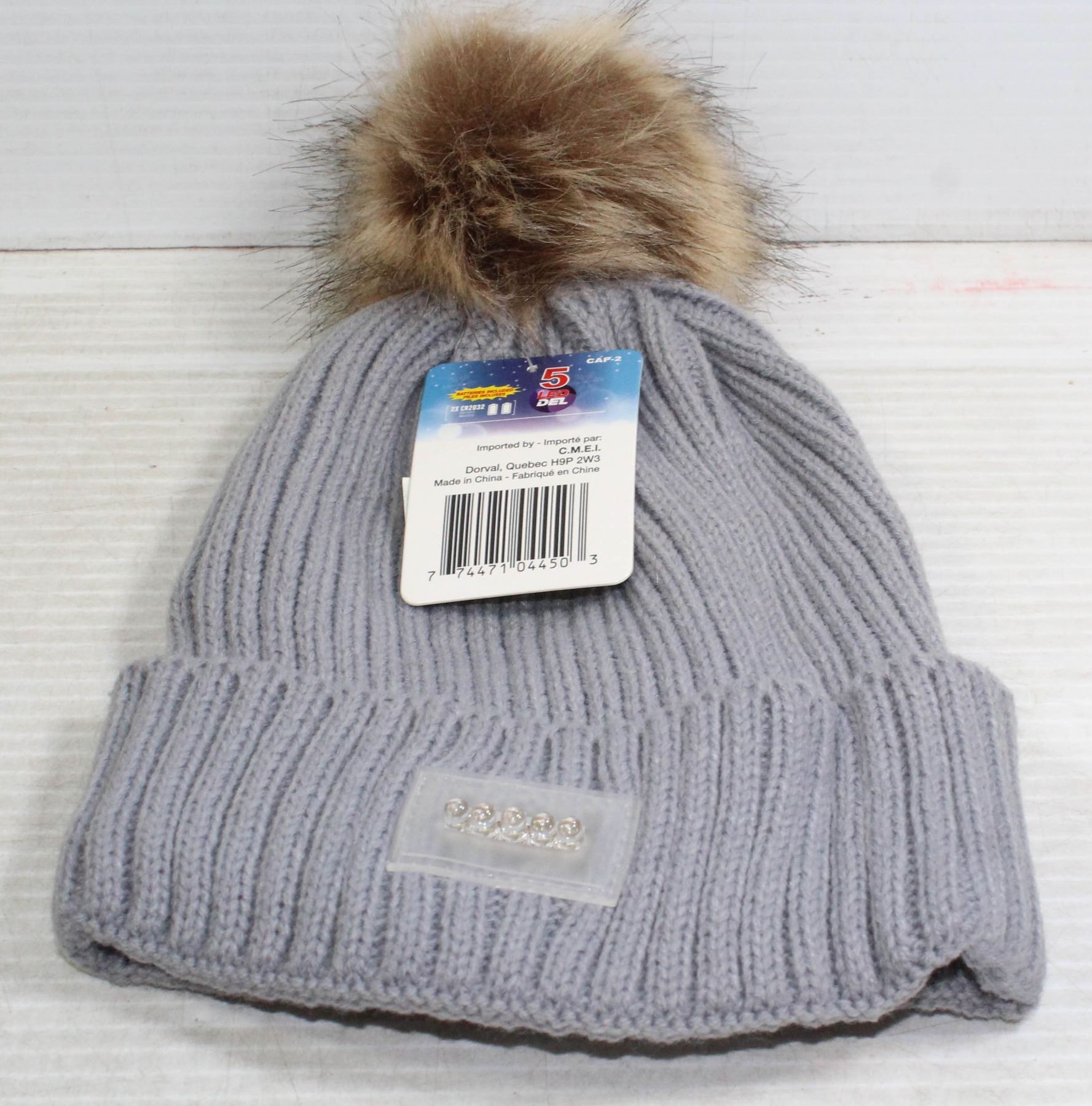 NEW GRAY LED TOQUE W/ 5 LED IN THE RIM