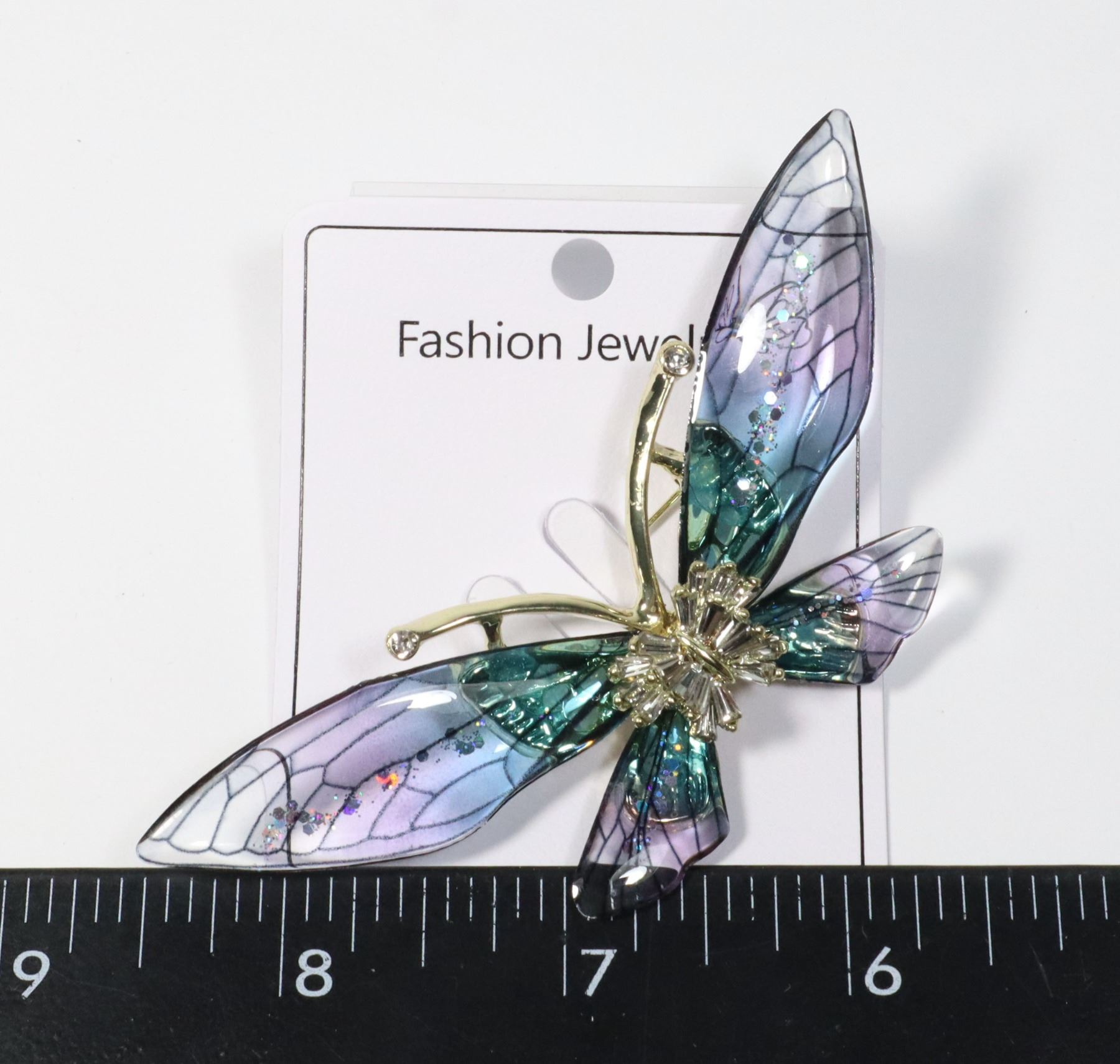 NEW GREEN-BLUE/SPARKLE WING RHINESTONE BUTTERFLY