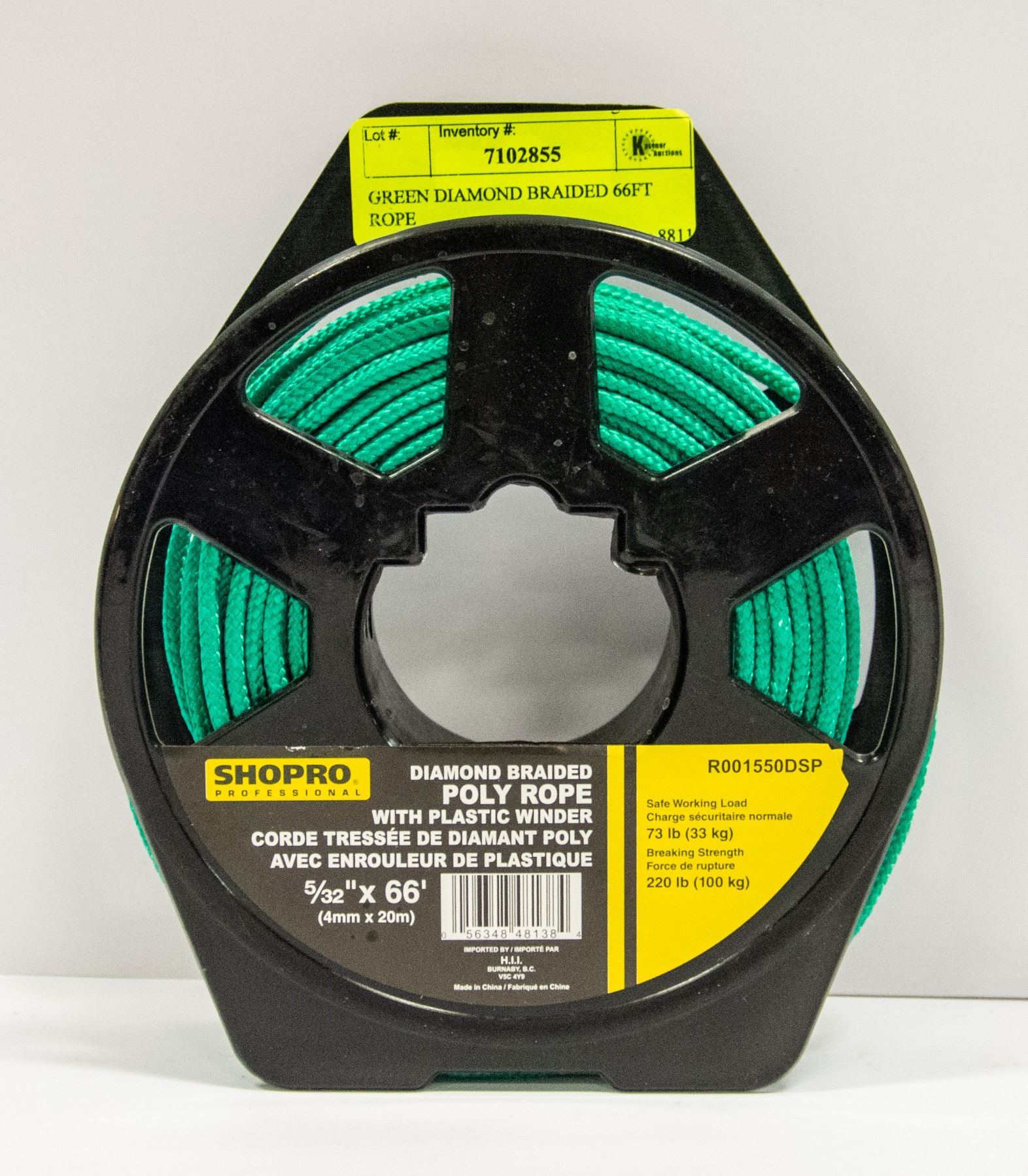 NEW GREEN DIAMOND BRAIDED 66FT ROPE