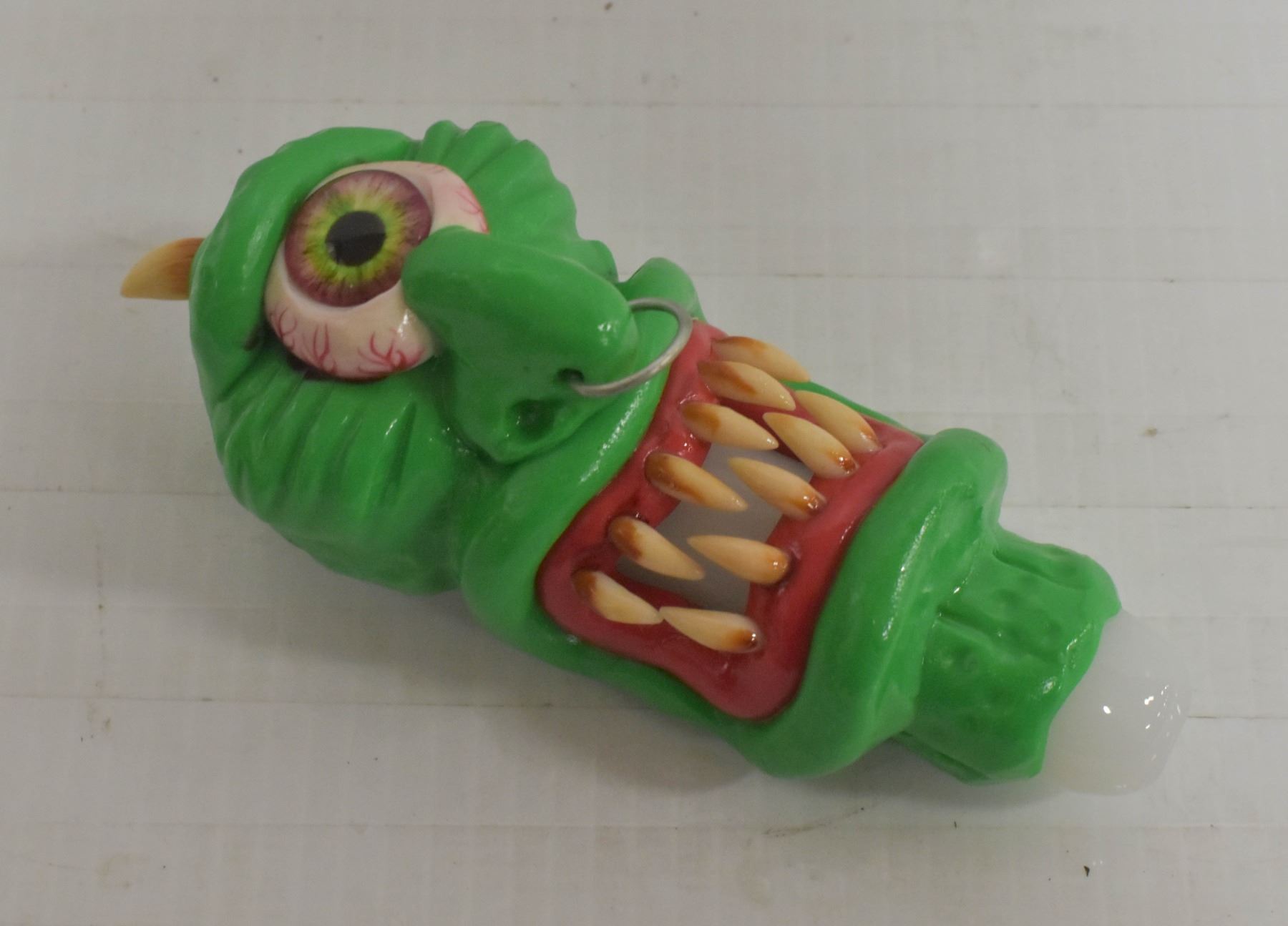NEW GREEN EYED HORNED MONSTER GLASS PIPE