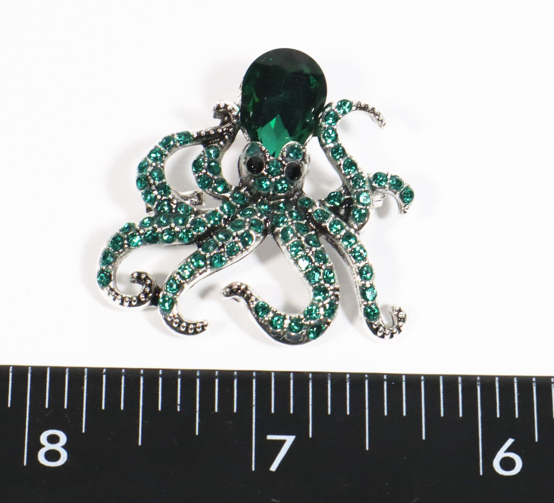 NEW GREEN RHINESTONE OCTOPUS BROCH