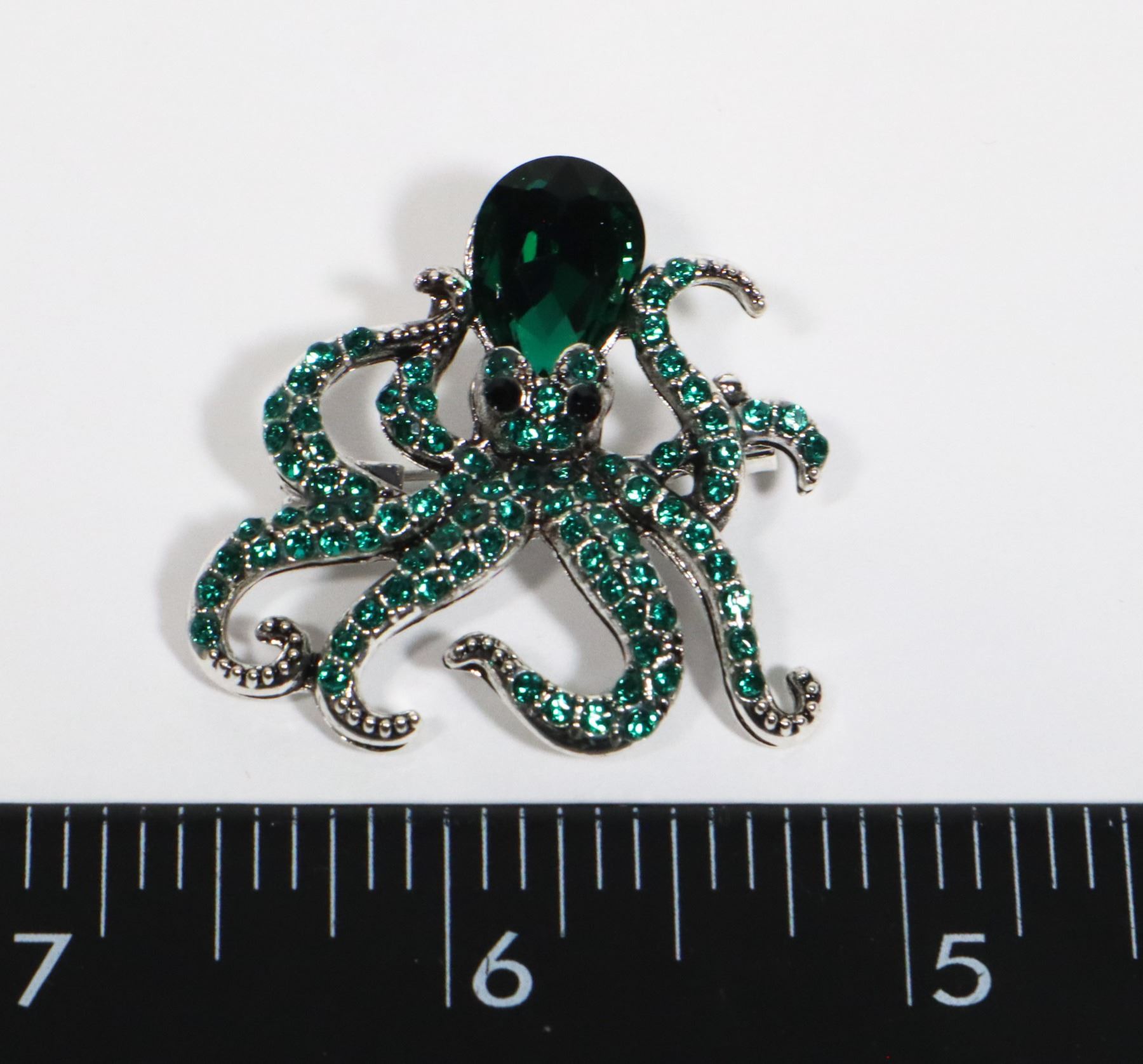 NEW GREEN RHINESTONE OCTOPUS BROCH