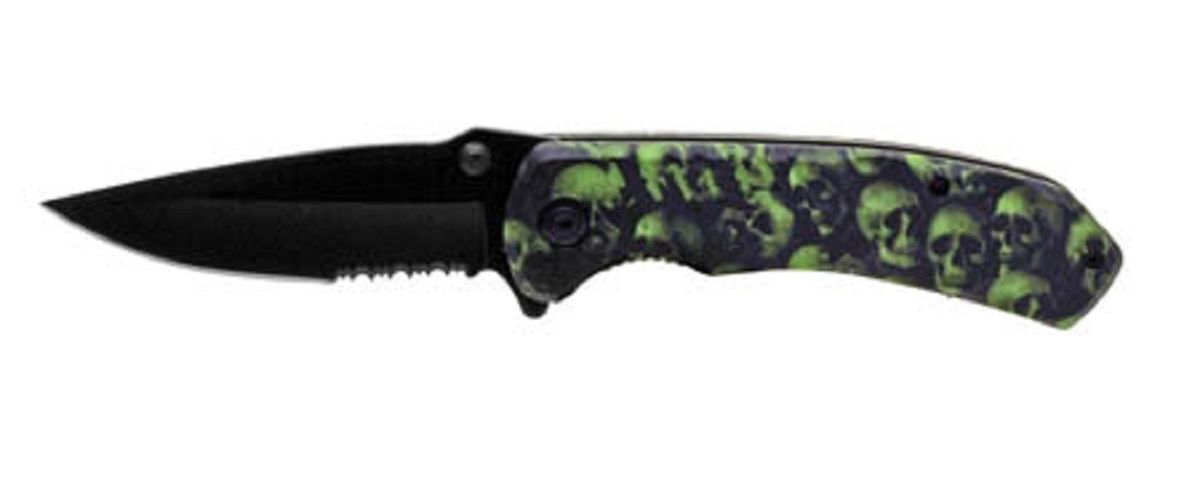 NEW GREEN SKULL CAMO SPRING ASSIST FOLDING KNIFE