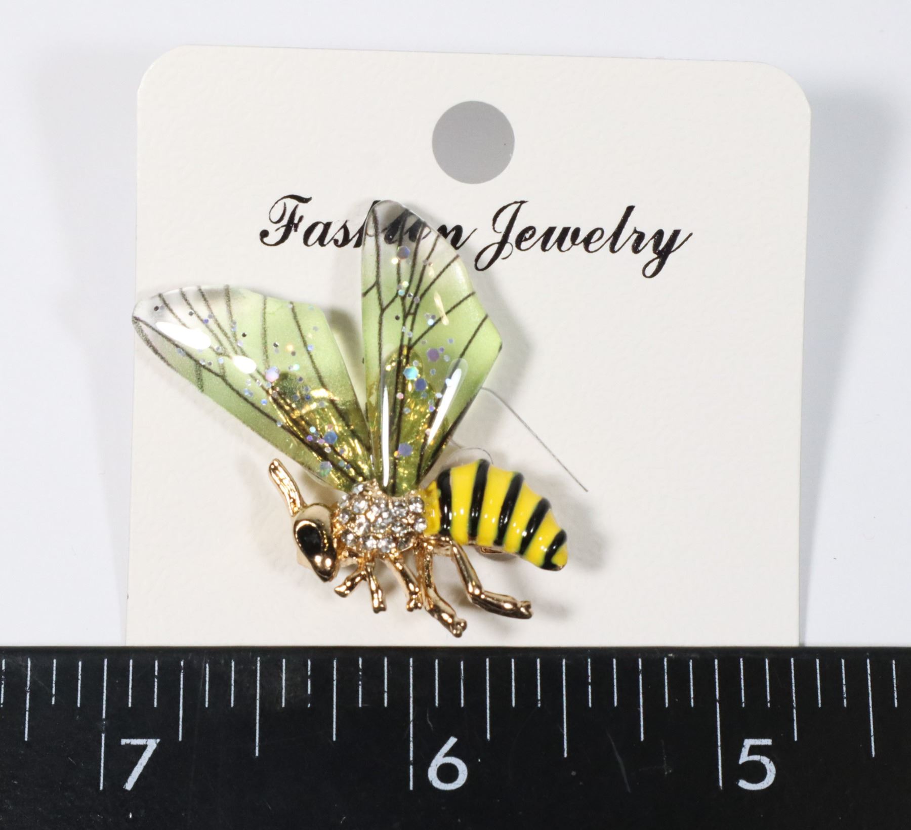 NEW GREEN SPARKLE WING RHINESTONE WASP BROOCH