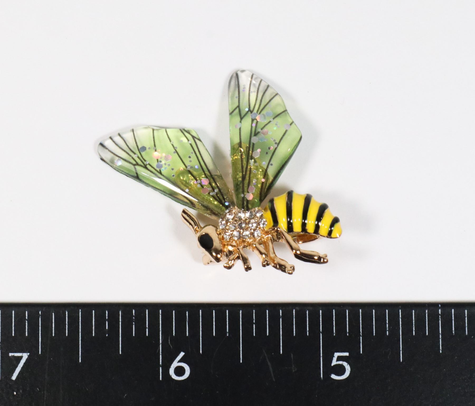 NEW GREEN SPARKLE WING RHINESTONE WASP BROOCH