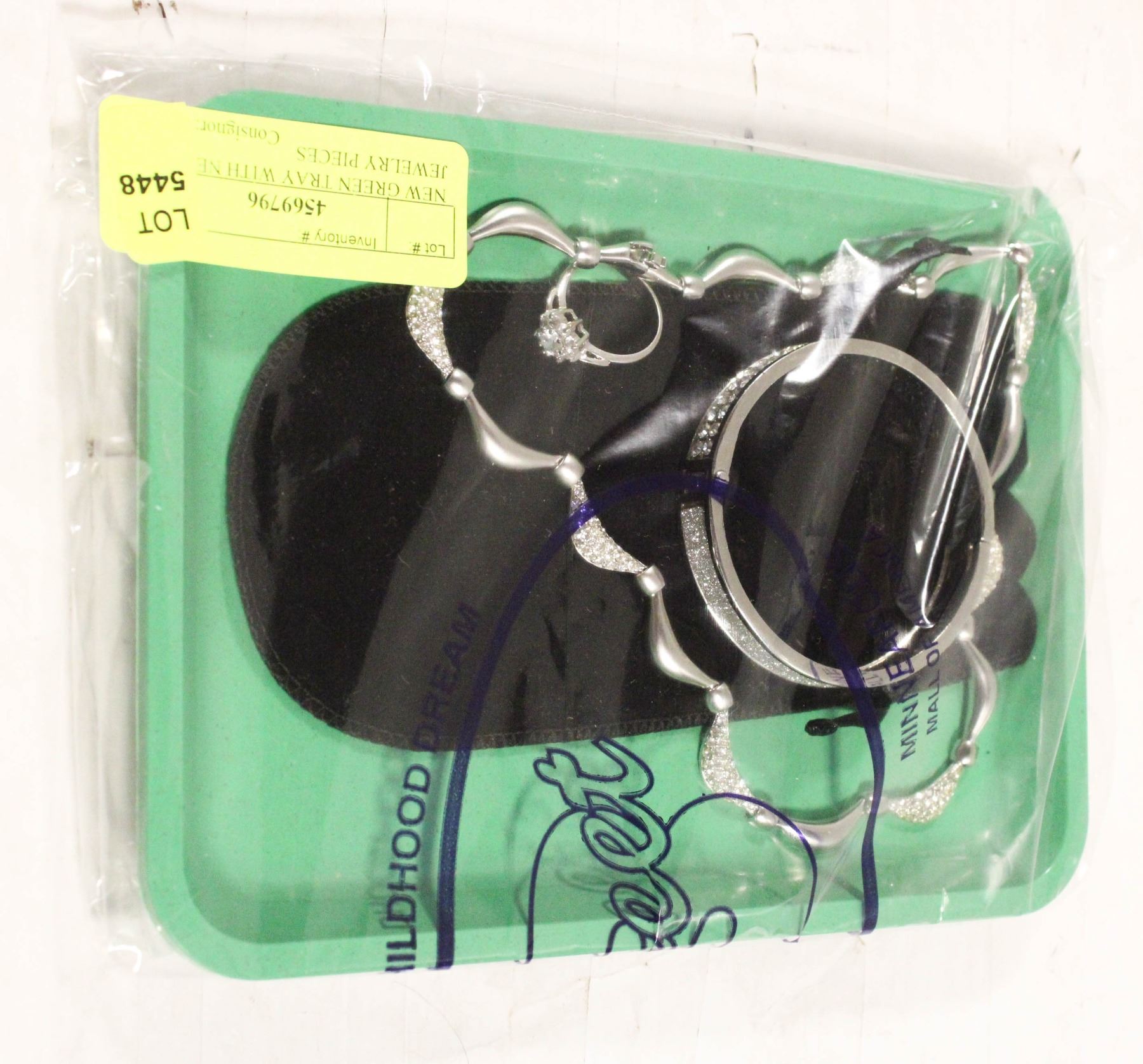 NEW GREEN TRAY WITH NEW JEWELRY PIECES