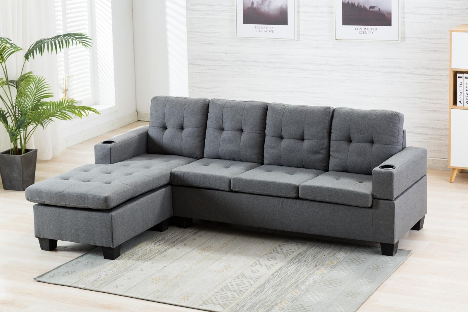 NEW GREY FABRIC REVERSIBLE L-SHAPE SECTIONAL