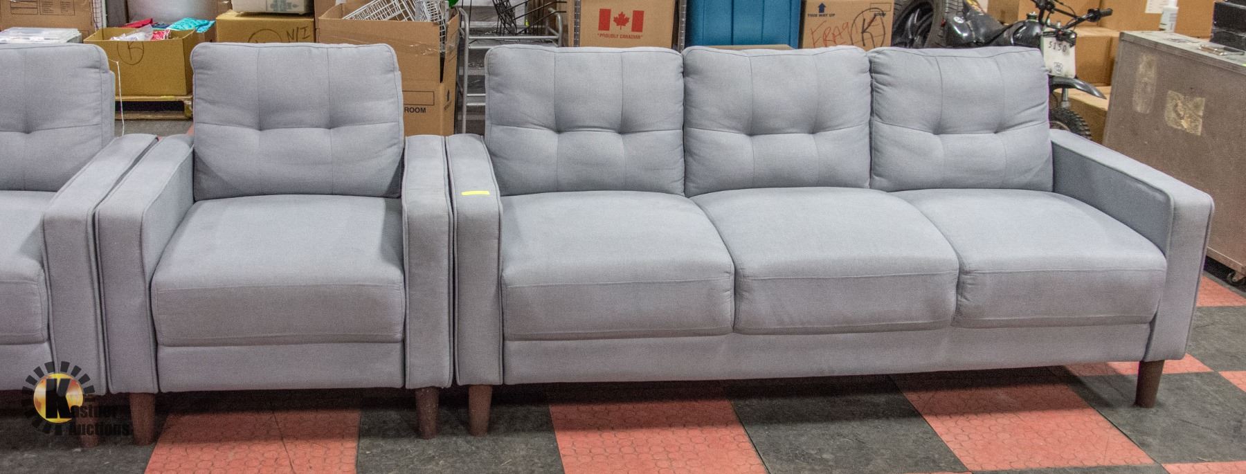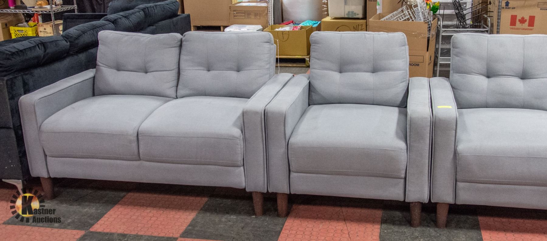 NEW GREY SOFA, LOVE-SEAT, & CHAIR SET ALL TOGETHER