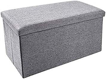 NEW GREY STORAGE OTTOMAN BENCH, 19 X 12 X 12"